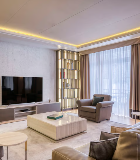 Kempinski Bar & Lobby — стильный бар-лаунж для коктейлей, вечерних напитков и лёгких закусок, популярное место после катания.