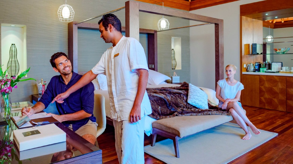 Курорт предлагает виллы на пляже и над водой, каждая из которых спроектирована как полностью приватное пространство.