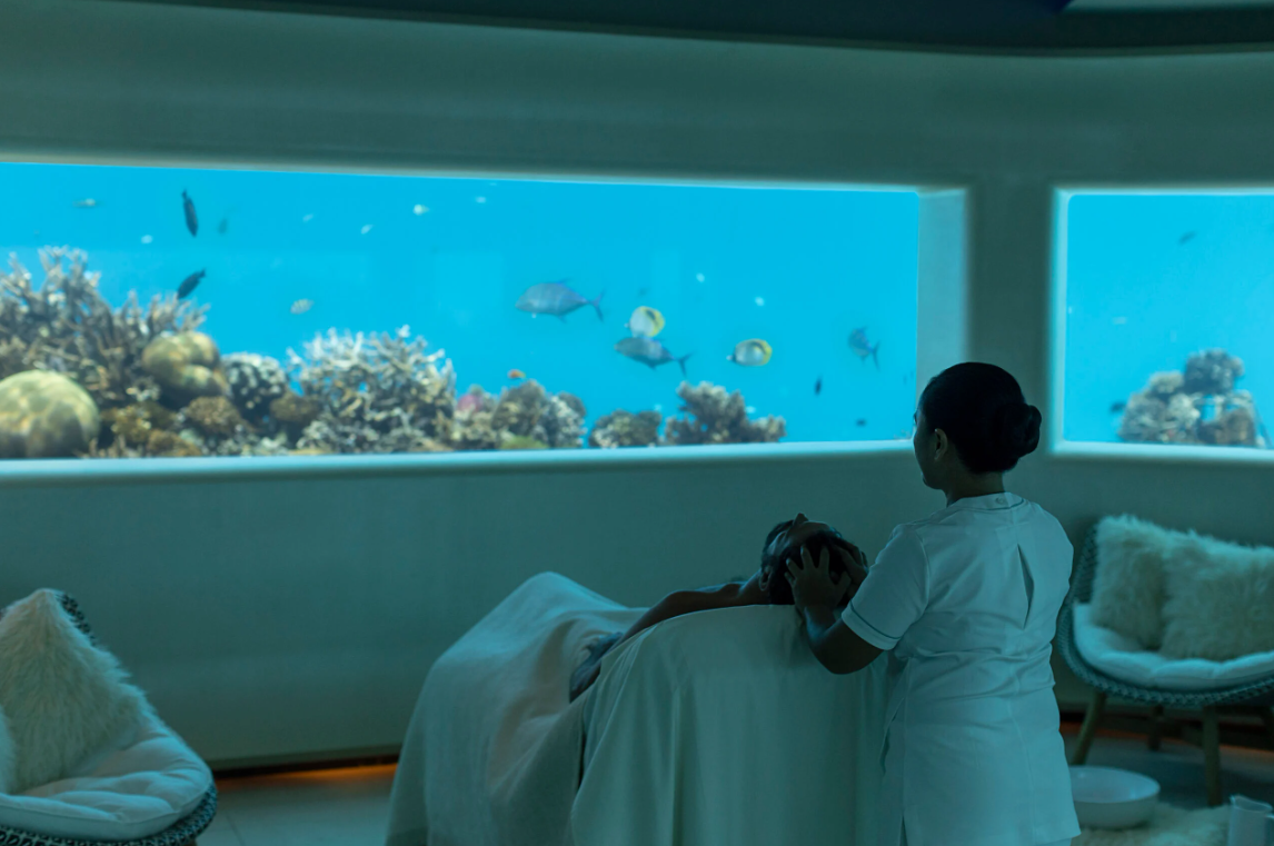 Huvafen SPA - это единственный в своем роде подводный СПА-центр, роскошная спокойная обстановка которого настроит на расслабление и восстановление. Огромное разнообразие ярких рыб за стеклянной стеной поднимет настроение и поможет восстановить силы. Фруктовый чай или настоянный на травах восстановит силы и тонизирует весь организм. Восстановить гармонию и равновесие помогут занятия йогой.