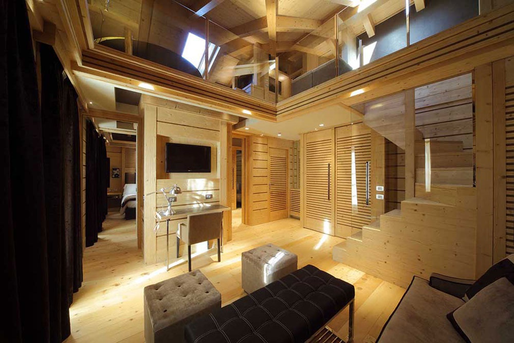 Отель предлагает 33 номера и 7 люксов, каждый из которых оформлен с акцентом на природные материалы, тёплое дерево пихты и камень, создавая атмосферу уюта и гармонии с окружающей природой. Комнаты отличаются продуманной планировкой, мягкими текстурами, панорамными видами на Доломиты и высококлассным оснащением. Есть как более компактные номера с террасой или садом, так и просторные люксы, часть из которых оборудована джакузи или отдельными зонами отдыха. Интерьеры выдержаны в современном альпийском стиле с элементами luxury, что обеспечивает высокий уровень комфорта и приватности.