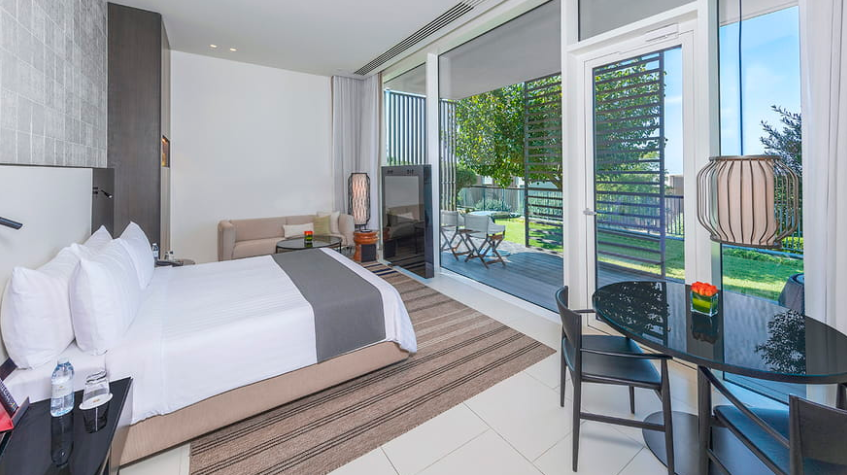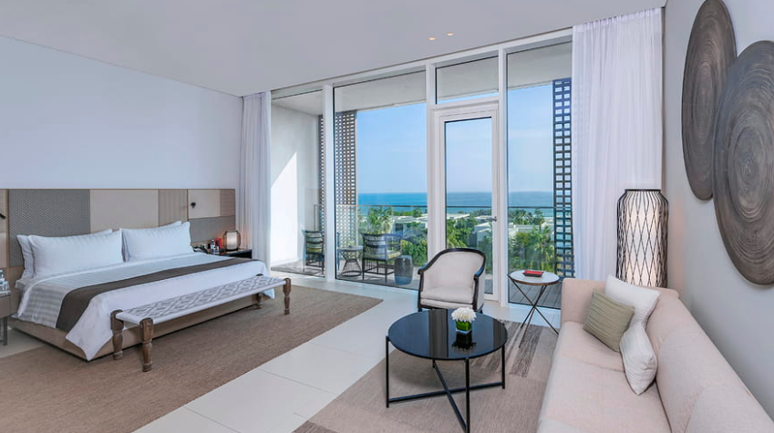 Откройте для себя вид на Персидский залив и мангровый лес с двух террас на возвышении. Этот изысканный люкс, залитый естественным светом, располагает роскошной гостиной зоной, произведениями современного искусства, кроватью размера «king-size» и собственной ванной комнатой со скульптурной ванной. Доступна дополнительная смежная гостевая комната.