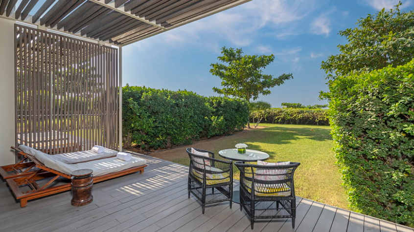 Эта просторная вилла станет настоящим оазисом для отдыха с близкими. Она предлагает просторные гостиную и столовую, а также три спальни с двуспальными кроватями, каждая из которых оборудована скульптурной ванной. Панорамные окна наполняют каждую комнату естественным светом, создавая ощущение постоянного единения с природой. На собственной террасе находится бассейн — идеальное место, чтобы освежиться и насладиться видом на окружающий сад.