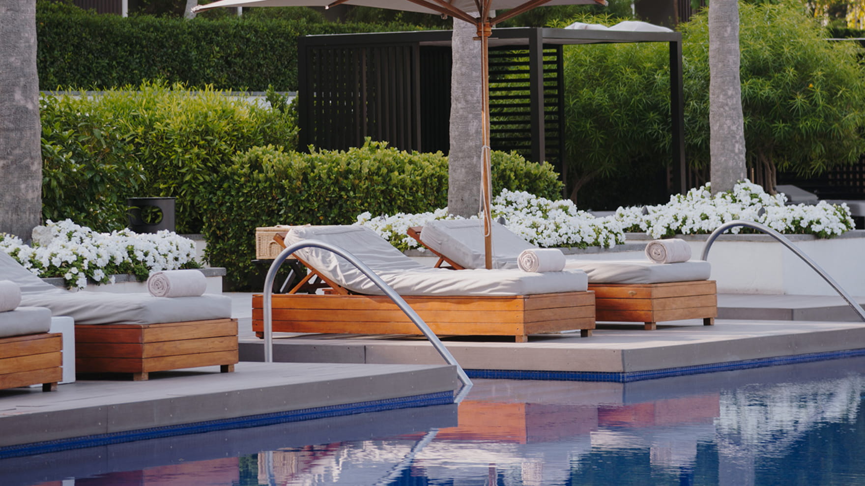 Насладитесь купанием в собственном бассейне или отдыхом на шезлонгах на меблированной террасе. Эта элегантная вилла, уединённая среди пышных садов, залита светом благодаря панорамным окнам. Роскошная гостиная и спальня с кроватью размера «king-size» и собственной ванной комнатой, включающей в себя скульптурную ванну, создают уютное место для отдыха.