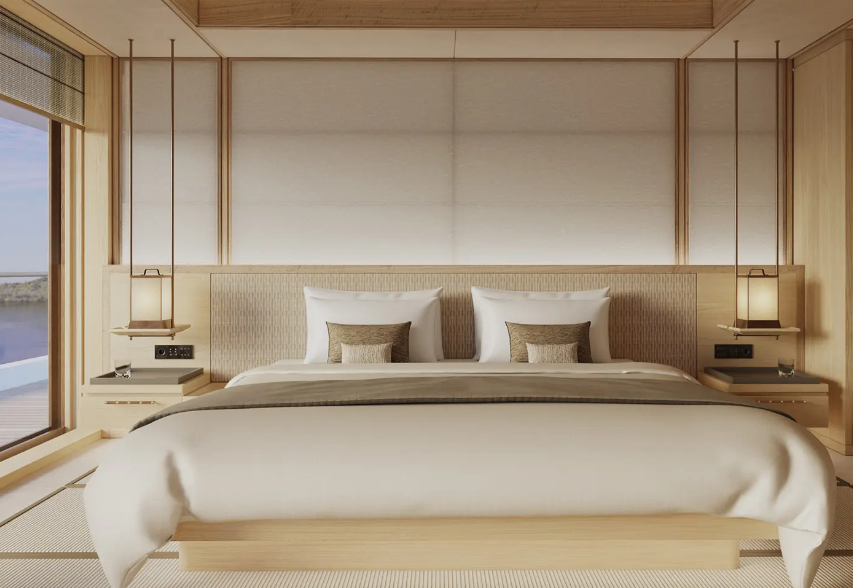 ![]() | Aman Suite Фірмовий люкс Amangati, до якого можна дістатися приватним ліфтом, займає площу 354 квадратних метри (3811 квадратних футів), є осередком спокою з власною масажною кімнатою та просторою терасою з приватним джакузі. Розташований у кормі на палубі 5. |